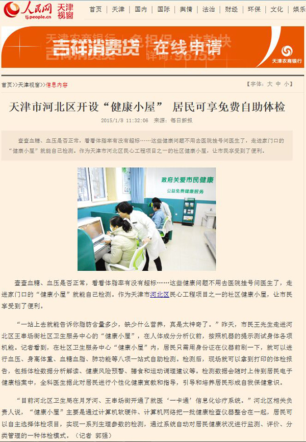 天津市河北區(qū)開設(shè)"健康小屋"居民可享受免費(fèi)自助體檢