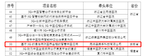 8月17日,中華人民共和國(guó)工業(yè)和信息化部官方網(wǎng)站發(fā)布了“5G+醫(yī)療健康應(yīng)用試點(diǎn)項(xiàng)目名單”,由蕪湖圣美孚科技有限公司牽頭,聯(lián)合蕪湖市中醫(yī)醫(yī)院、蕪湖市高科電子有限公司、安徽中醫(yī)藥高等專(zhuān)科學(xué)校、中國(guó)電信股份有限公司蕪湖分公司、天津理工大學(xué)五家單位共同申報(bào)的《基于5G的慢性病防醫(yī)養(yǎng)全程的智慧中醫(yī)應(yīng)用》項(xiàng)目成功入選此次應(yīng)用試點(diǎn)項(xiàng)目名單,也是安徽省入選“5G+中醫(yī)診療”方向名單的項(xiàng)目。
